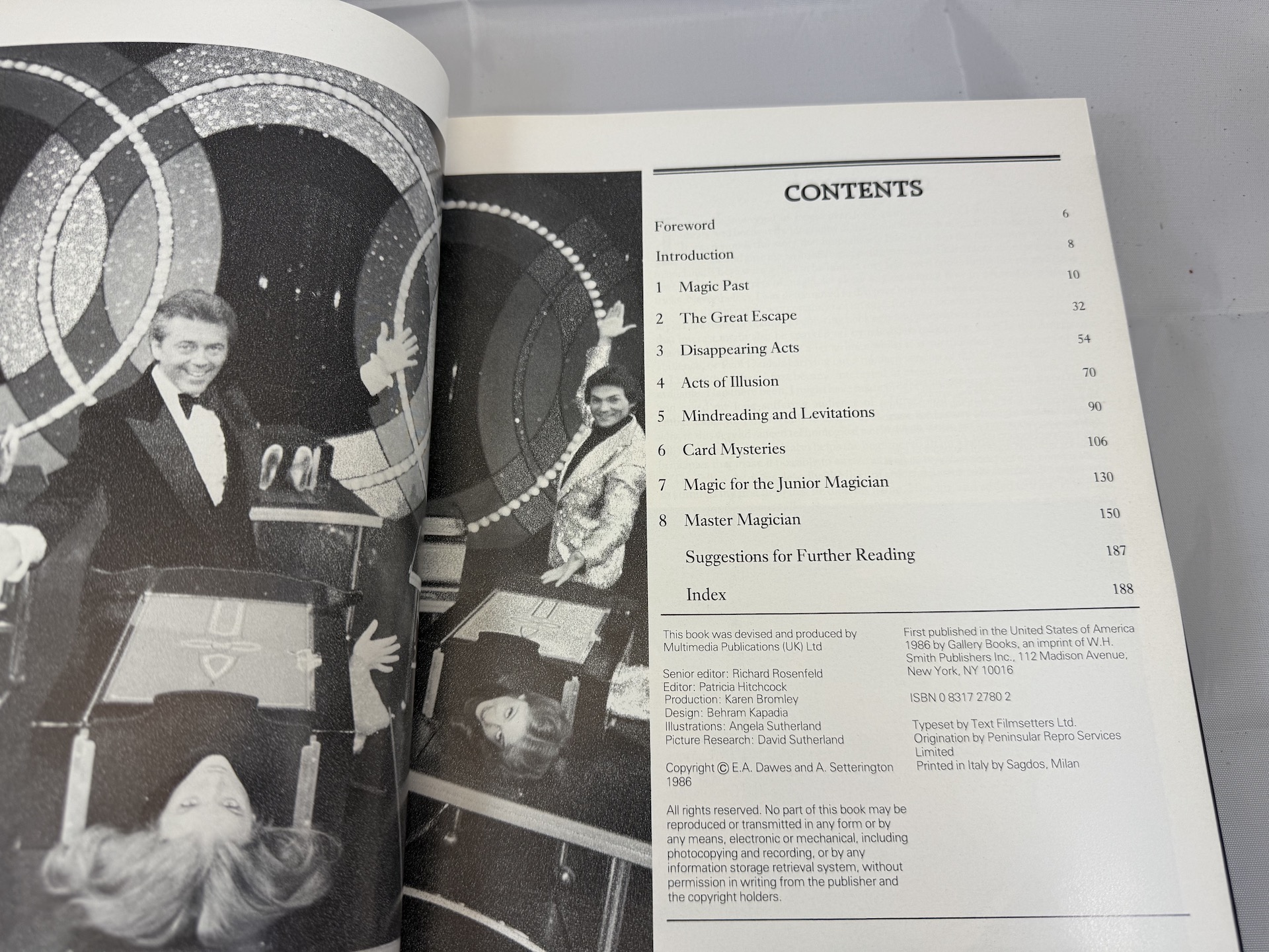 This hardcover reference is an accessible compendium of magic history, techniques, and notable personalities, co-authored by historian Edwin A. Dawes and magician-writer Arthur Setterington. Published in the late 1980s, it's a visually engaging, well-organized book featuring profiles, essays, and illustrations covering all branches of magic—from close-up and stage performance to mentalism and classic illusions.